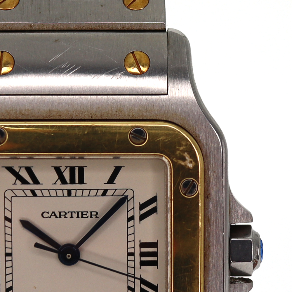 宝飾ブランドとしても有名なカルティエの腕時計、サントスガルベLMです。