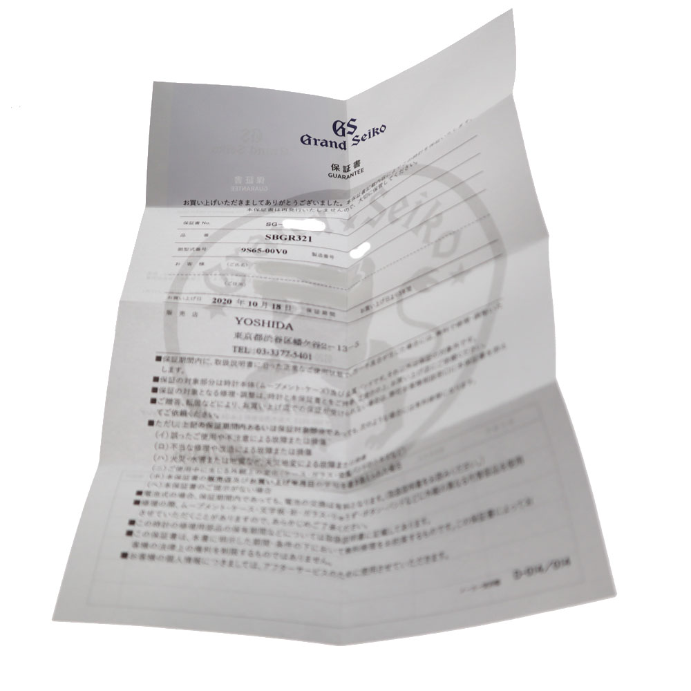 保証書自体の効力はとても強くグランドセイコー自体の保証が3年間、修理を受けることが出来るという効力と、中古品として購入してもらう際にその時計と品質を証明することが出来るので重要性は非常に高い効力を持っております。