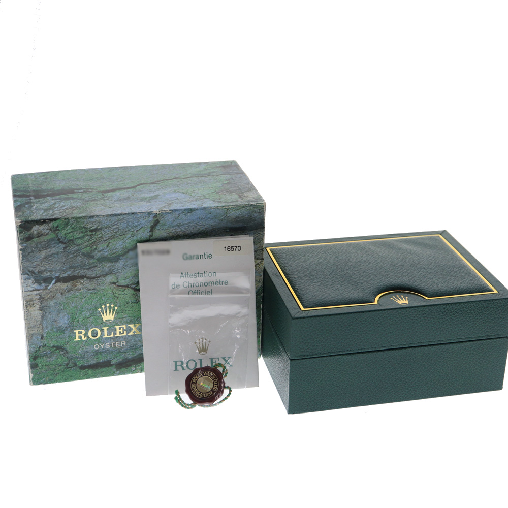 今回買取させて頂いたお時計には箱・外箱・コマ・メーカー保証書のすべてがそろっていましたので、マイナス査定にはなっておりません。