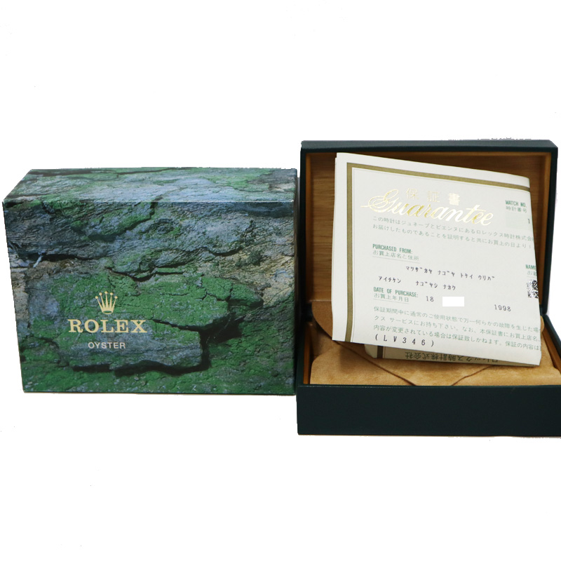 今回買取させて頂いたお時計には箱・外箱・コマ・メーカー保証書のすべてがそろっていましたので、マイナス査定にはなっておりません。