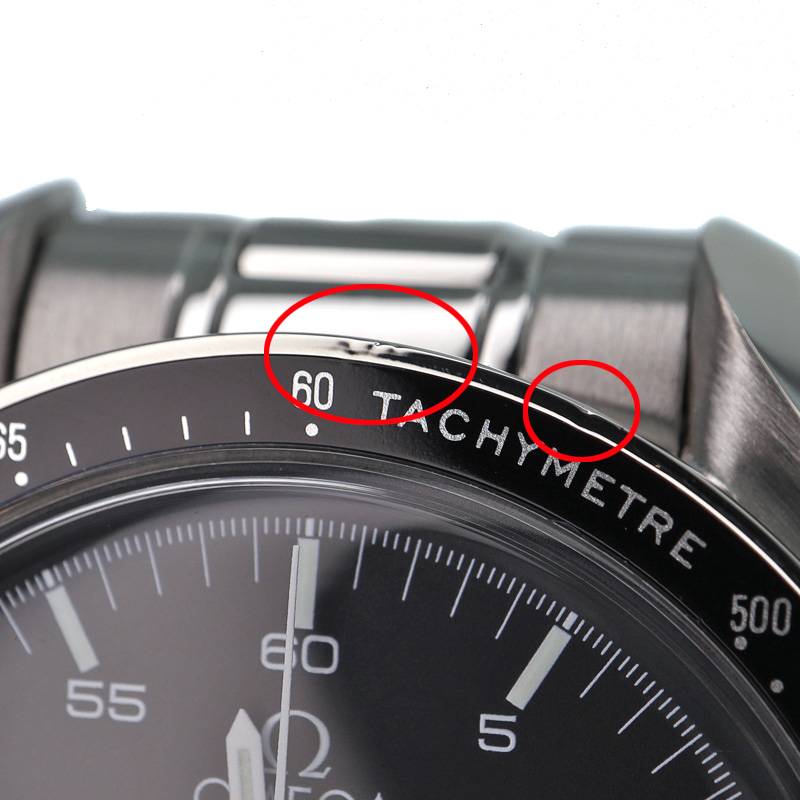 ベゼル部分も研磨が出来ない場所のひとつで、この部分に深い傷が入ると、交換以外キレイにする方法はありません。