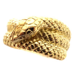 今回はK18の2ポイントダイヤ付スネークリングを「185,000円」で買取しました。