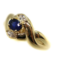 今回買取させていただいた、「K18 青石付リング」は18金を使用しており、宝石をあしらった豪華なデザインのリングです。