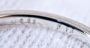 今回のジュエリーは「Pt900」という刻印がありますので、純度が「90%」のPt900と呼ばれる地金が使われています。