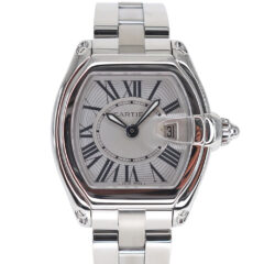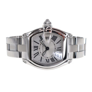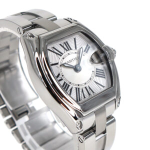 カルティエのスポーツモデルライン【ロードスター】。スポーツカーからインスパイアを受けたフォルムにビッグローマンの時間表示がクラシックな印象を与える腕時計。