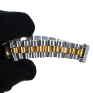 ゴールドとシルバーのコンビが高級感のある腕時計です。