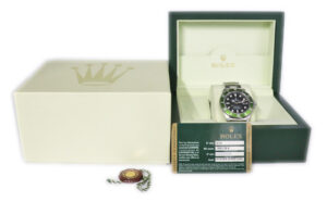 今回の「ロレックス 16610LV/サブマリーナーデイト」は、300mと高い防水性能を誇る本格的なダイバーズウォッチで、ロレックスのコーポレートカラーであるグリーンをベゼルに採用しているプロフェッショナルモデルの中でも非常に人気の高いモデルになります。