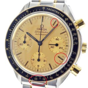 人気の高いスピードマスターとしては珍しいSS(ステンレススティール)×YG(イエローゴールド)のコンビモデルです。