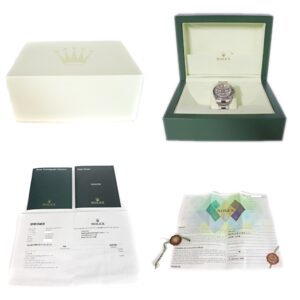 今回の「116509/コスモグラフ デイトナ」には外箱/箱/メーカー保証書/取扱説明書/グリーンタグがついておりました。