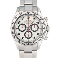 今回の「ロレックス 116509/コスモグラフ デイトナ」は、ロレックス唯一のクロノグラフモデルで、中でもこちらは素材にホワイトゴールドを採用した、ゴージャス且つスポーティなデイトナです。