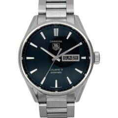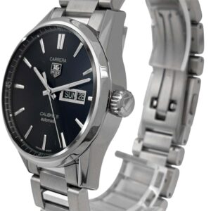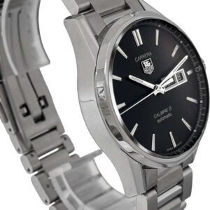 タグホイヤーのカレラ キャリバー5(モデル番号: WAR201A-1)は、シンプルでクラシックなデザインが特徴の自動巻き腕時計です。