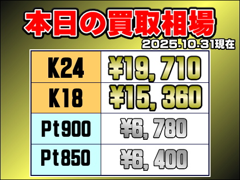 ※2025年10月の実例となるため金(ゴールド)・プラチナ製品は相場変動により買取価格は変動いたします。