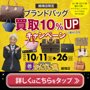 2025年10月11日~10月26日の期間で、質屋かんてい局細畑店限定「ブランドバッグ買取10%アップキャンペーン」を開催いたします!