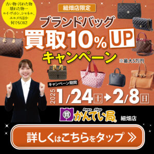2026年1月24日から2月8日の期間で、質屋かんてい局細畑店限定「ブランドバッグ買取10%アップキャンペーン」を開催いたします!