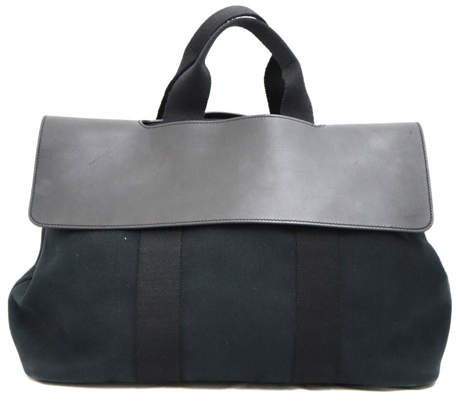 ケリーバッグを想像させる台形フォルムに、キャンバスとレザーを組み合わせたカジュアルな印象です。