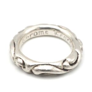 クロムハーツのリングの中ではペアリングとして使われることも多いこちらのスペーサーリングですが、モチーフがかなり多い為、人気が分散しやすく、中古相場の中では安価で購入することができます。