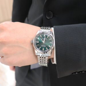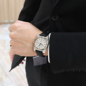 無駄を削ぎ落としたケースラインや、視認性の高いダイヤル、シャープなインデックスなど、シンプルでありながら上品な存在感を放ちます。