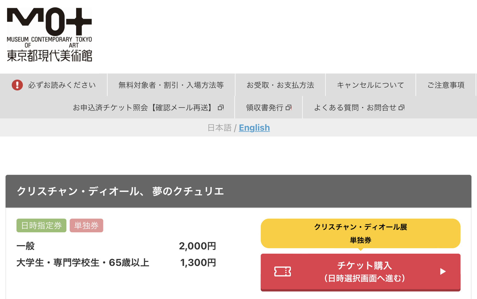【ディオール展】チケット購入