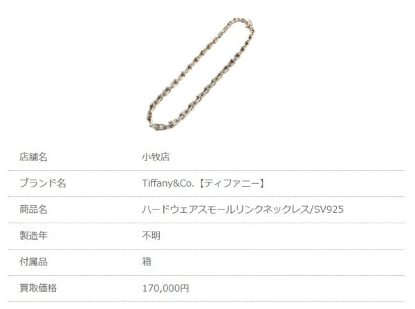 ティファニー 保証書なしで買取された実績紹介