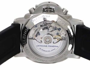 パネライの自社ムーブメントCal.P.2003は、最大10日間のロングパワーリザーブを実現しました。ケースだけでなくムーブメントもタフな作りとなっています。