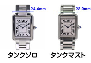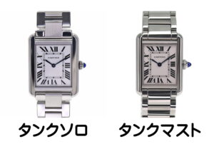 タンクソロとタンクマストはどちらも世界的に評価が高いカルティエの時計とあってデザイン性が高く、人気の高い腕時計です。