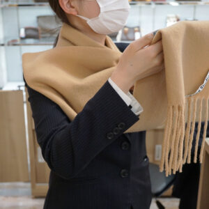 現在の流行としては、ボリュームのある生地感のマフラーをボリュームの出る巻き方をするのが主流みたいです!