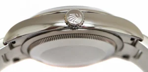 100mの完全防水を実現した、ロレックス独自の強固なケース構造で、ねじ込み式のリューズと裏蓋で密閉され、日常使いの安心感が抜群です。