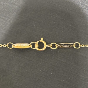 小ぶりでシンプルな引き輪(丸カン)になり、楕円系のプレートには「TIFFANY&CO.」の刻印があります。