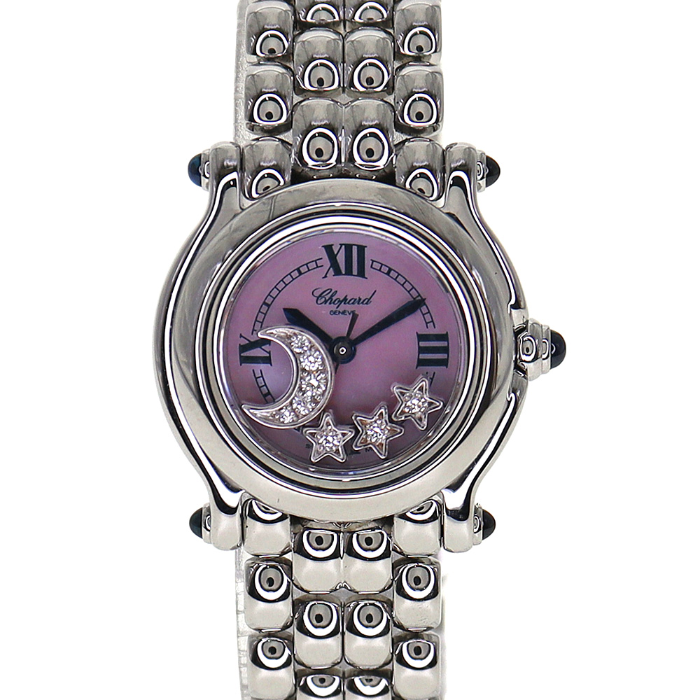 ハッピースポーツ ムーンスターは、定番のハッピースポーツにロマンチックな要素を加えた特別なモデルです。何と言っても最大の魅力は、月と星をモチーフにしたムーンフェイズデザイン。夜空を思わせる表情が、女性らしい優雅さや詩的な雰囲気を演出します。