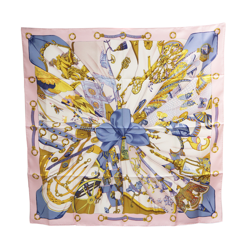 開閉がしやすいラウンドジップと、エルメスのスカーフ・カレと同じシルク生地が使われた内側の美しい模様が特徴です。