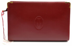 正面に施されたロゴが、シンプルながら存在感を放つカルティエのクラッチバッグ。