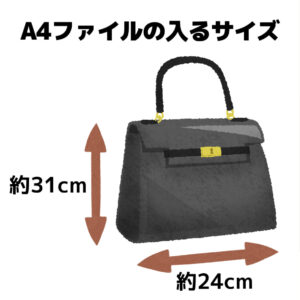 A4の書類やタブレットなど、仕事で必要なアイテムをすっきり納められる余裕のあるサイズ感です。見た目は上品な印象ですが収納力もしっかり備えているため”おしゃれだけど働くバッグ”として、とても使いやすいモデルです。