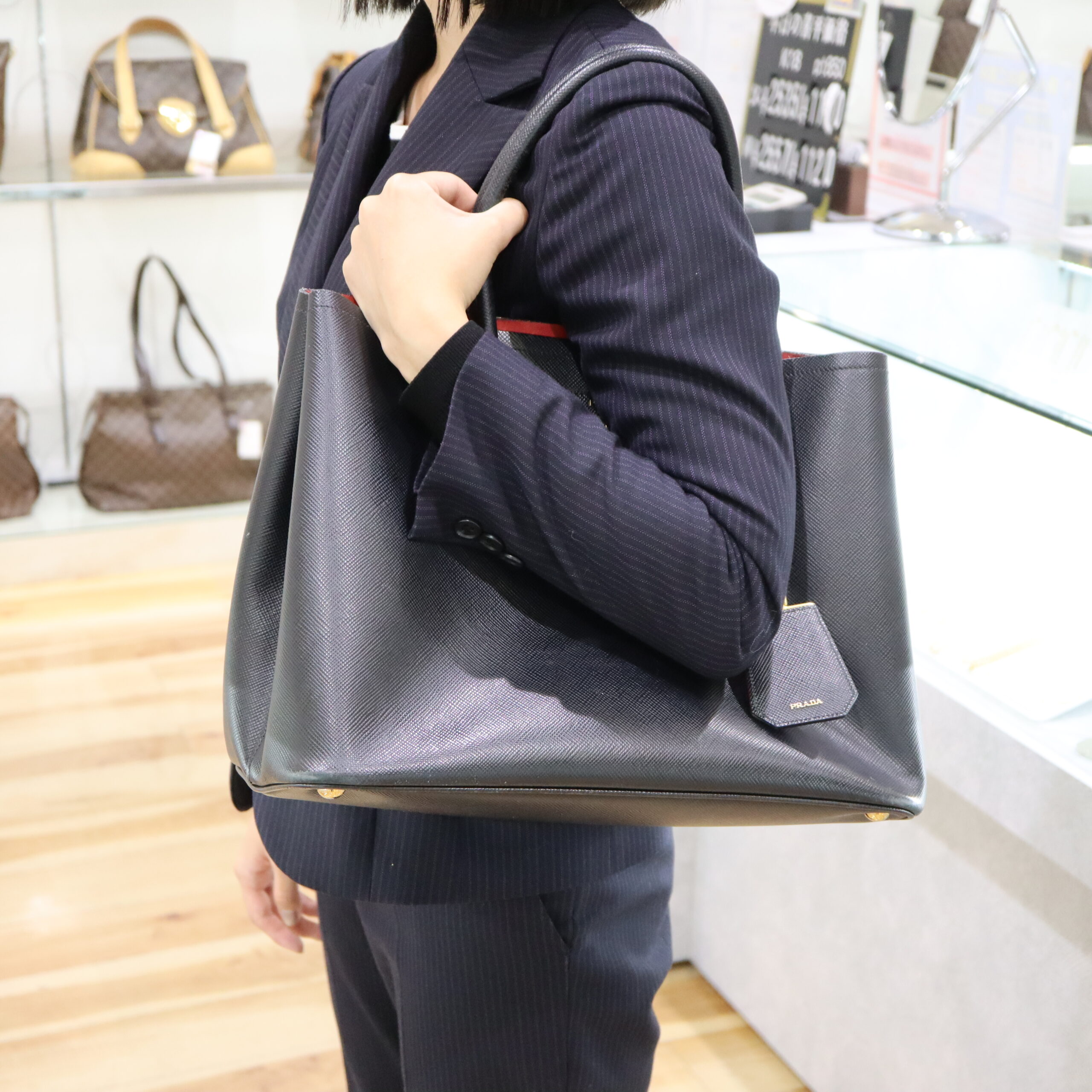 こちらのバッグは、ブランドを象徴するプラダ独自のサフィアーノレザーが使用されています。細かな型押し加工がされており、傷がつきにくく色落ちもしにくいため、日常使いにぴったりです。”見た目の美しさ”と”長く使える実用性”を両立しているのが大きな魅力です。