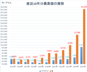 2025年11月現在、プラチナは史上最高値に迫る価格上昇を見せているんです✨
