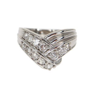 プラチナの輝きに加え、2列に施されたダイヤモンドがキラキラと輝きます。
