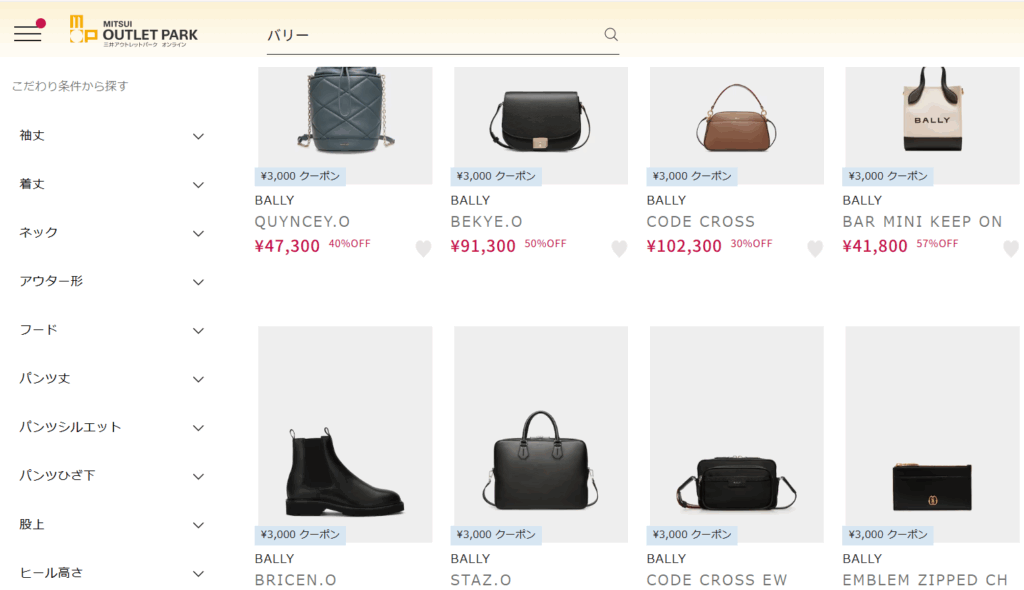 現在、バリー公式のアウトレット品は【アウトレットパークが運営している公式オンラインショップ】から購入可能です。ただし、バリーのブティック自体が運営している状態ではなく、あくまで「アウトレットパーク経由での通販」となっています。