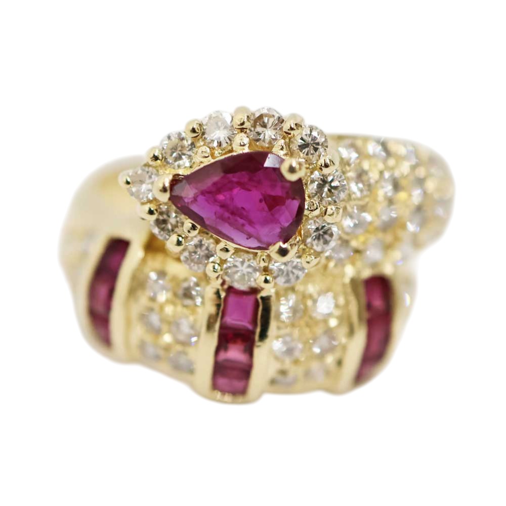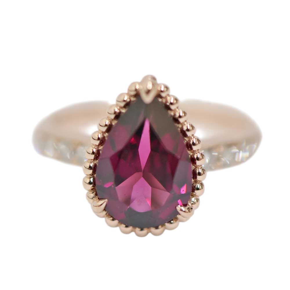 K10より金色が濃いため、ダイアモンド、サファイア、ルビーなどの貴石と相性が良いです。