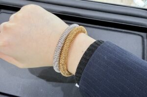 K18をコイルのようにデザインし、腕元で存在感をあたえてくれる仕上がりになっています。