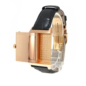 もともとはポロ競技においてガラス(風防)の損傷を防ぐために作られた機構が現代にも受け継がれており、今では裏側に様々なデザインがされているモデルもあり、オシャレに作られております。落ち着いたデザインで、大人なデザインって感じですね。