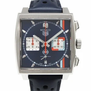 タグホイヤーはラウンドタイプが多くありますが、その中で「モナコ」というモデルはスクエアタイプとなっております。モナコは角型初の防水性時計として開発され、当時は非常に難しかった角型パッキンと頑丈なケースによる防水性は世界を驚愕させました。