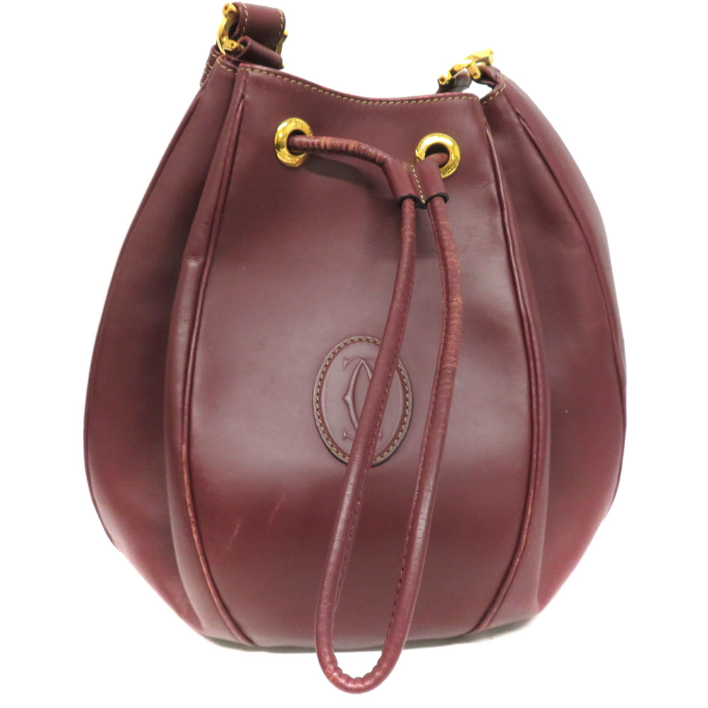 ワインレッドカラーが目を惹くマルチェロラインのカルティエらしいバッグです。