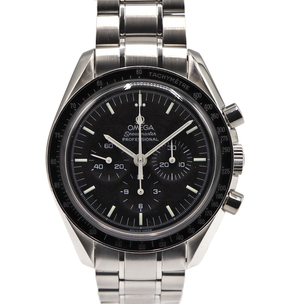 前期型は3時・6時・9時のアラビア数字に夜光塗料が塗布されておらず(ブラックアウト)、金属光沢のみで表現されているため、よりシンプルで洗練された印象を与えます。