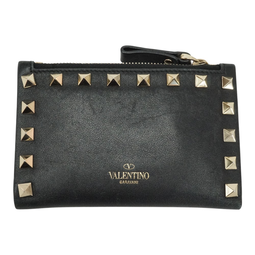 ヴァレンティノ Valentino 2つ折り財布 ロックスタッズモールウォレット ブラック【中古】