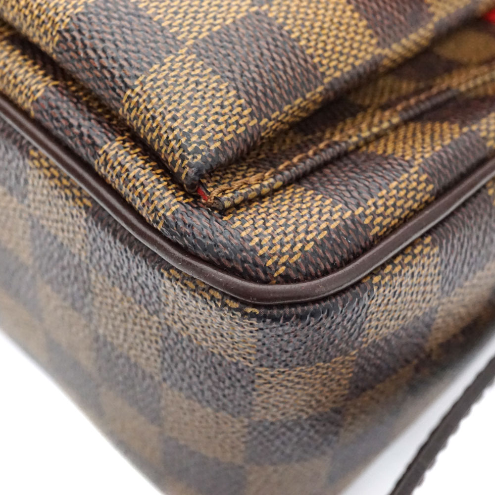 金具のついた前ポケットが印象的な、定番人気のダミエ・エベヌ柄のショルダーバッグです。 横長のサイズの為長財布等も収納して頂けます。 お探しの方はこの機会にぜひいかがでしょうか。