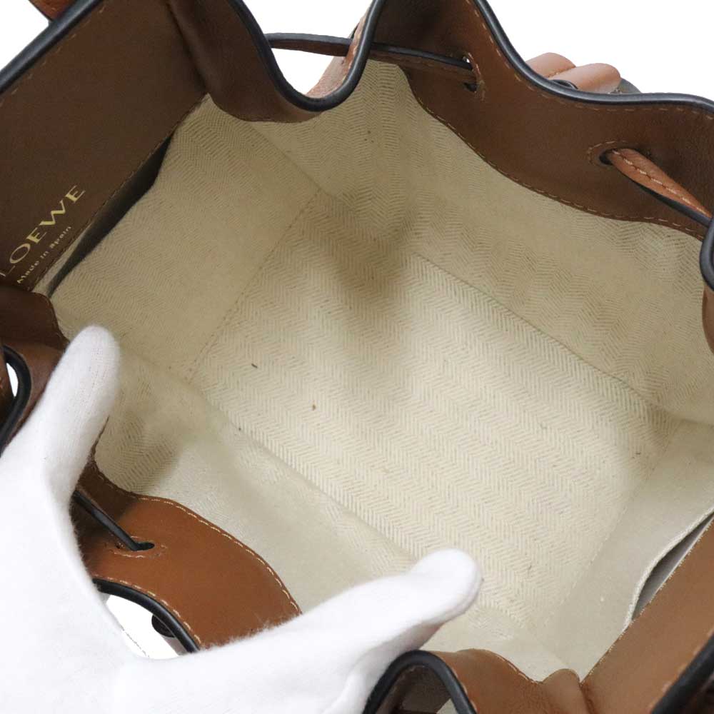 ロエベ Loewe A538V07X11 ハンモック ドローストリングバッグ ミニ ベージュ×ブラウン 鞄 レディース 2WAYバッグ レザー×キャンバス【中古】