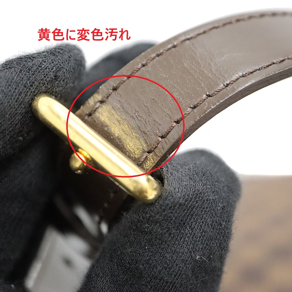| 商品状態 | ■角スレ・めくれあり。 ■金具キズ・黒ずみ・変色・ハゲあり。 ■ショルダー型崩れ・一部金具跡による変色あり。 ■ショルダー調節穴しわ・使用感あり。 ■バッグ内全体的に色あせ・白いスレ汚れあり。 ■ファスナーレール隙間あきあり。(9枚目) ■バッグ内嫌なニオイなし。 ※店頭でも販売しているため、画像に無いキズや汚れが付く可能性がありますので予めご了承ください。 |