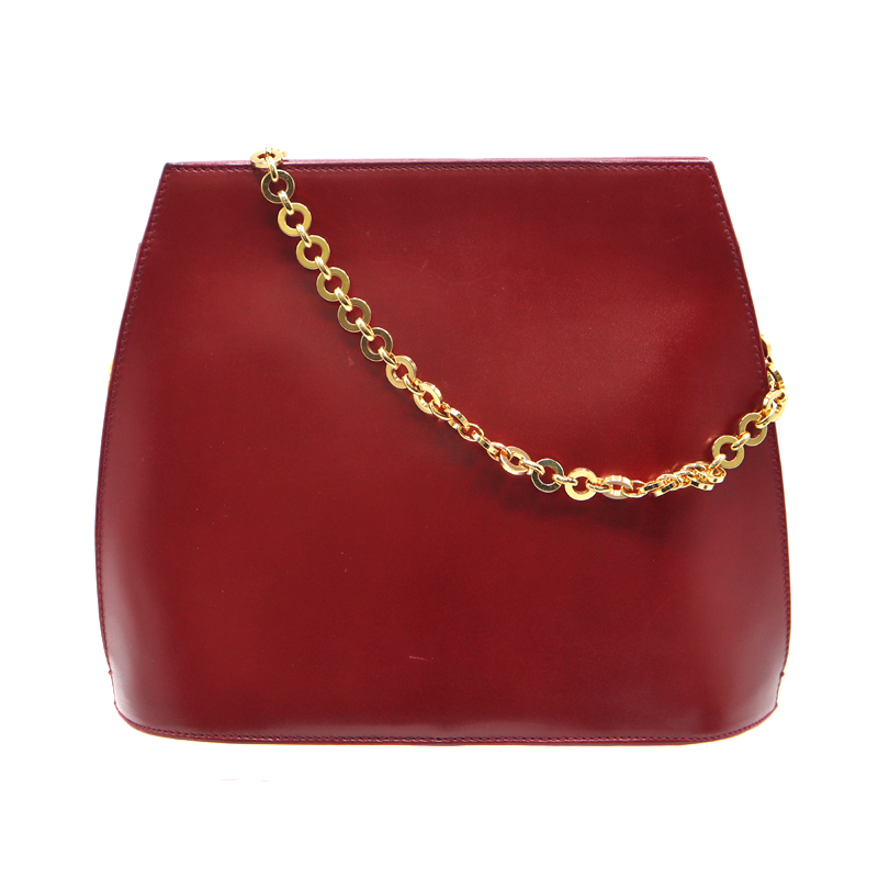 ボルドーのお色が上品で、様々な服装に合わせやすいショルダーバッグとなっています。