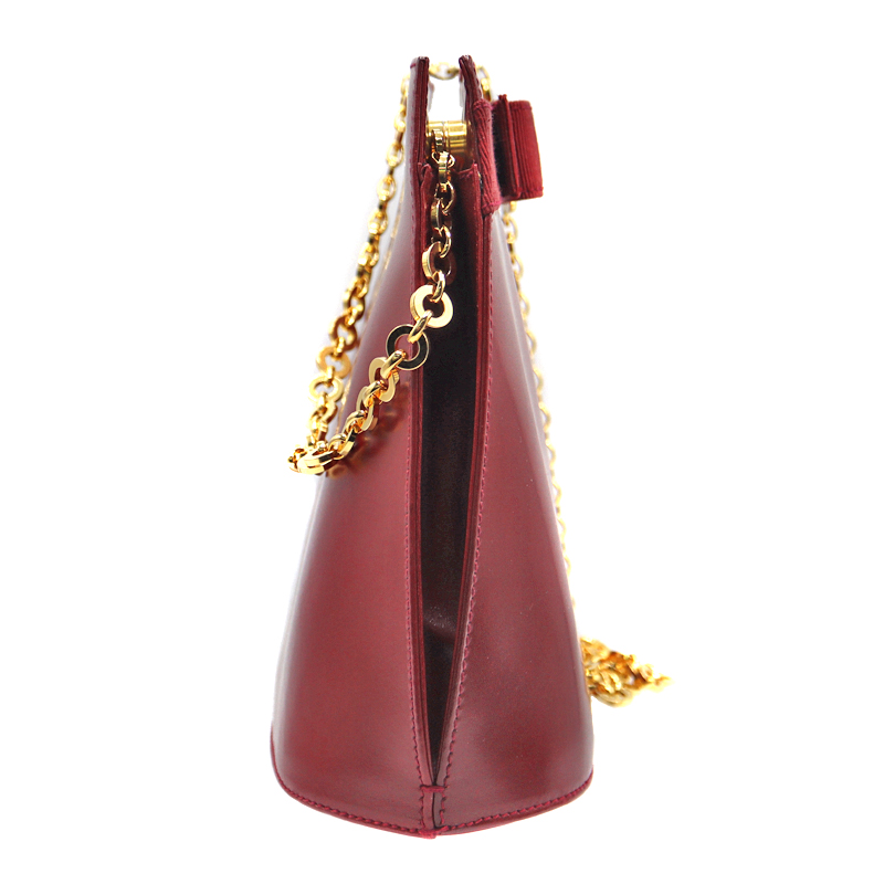 サルバトーレフェラガモ Salvatoreferragamo AD12-4182 チェーンショルダーバッグ レザー レッド ボルドー【中古】