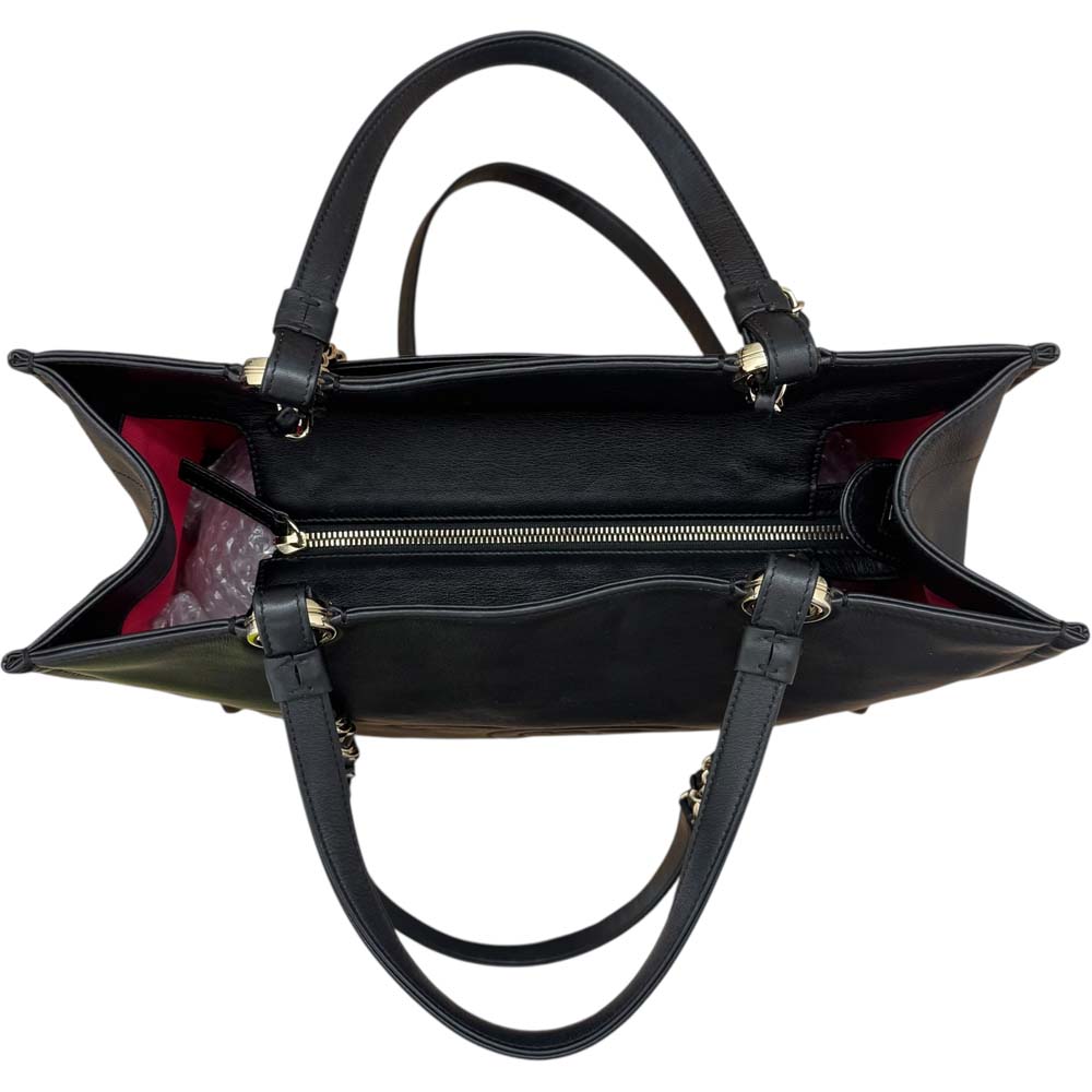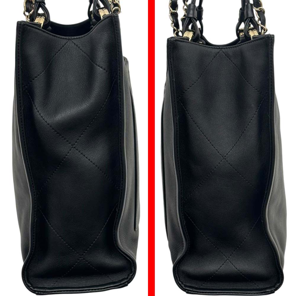 | 商品説明 | この2WAYトートは、ソフトなラムスキンの質感と高級感のあるチェーンストラップが魅力です。外側に便利なオープンポケット、内側にはジッパー式とオープン式のポケットを備え、整理された収納が可能です。ハンドバッグとしてもショルダーとしても使えるため、気分や装いに応じてスタイルを変えられます。シンプルで洗練されたフォルムは、オンオフを問わずコーディネートを格上げする万能アイテムです。 |