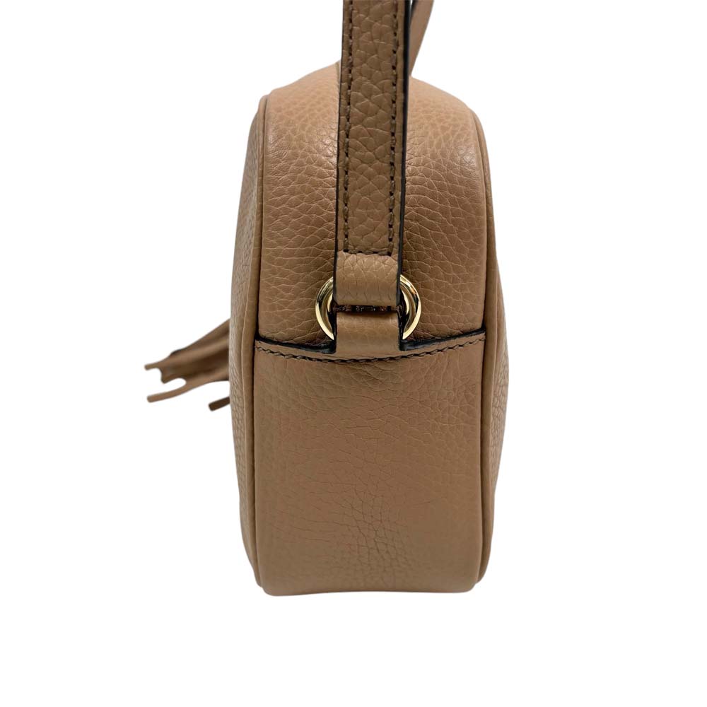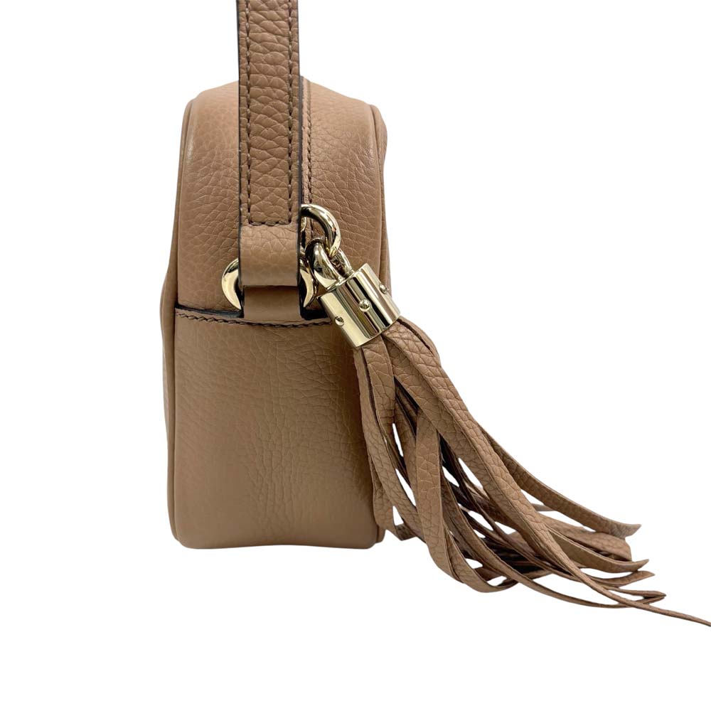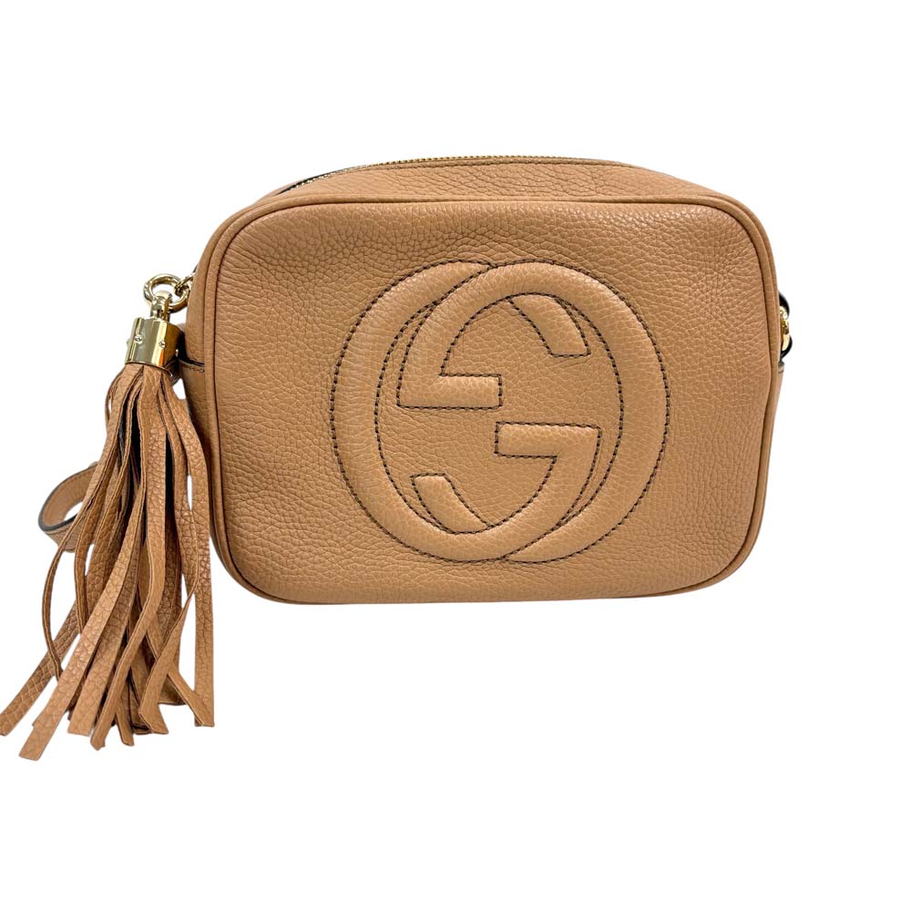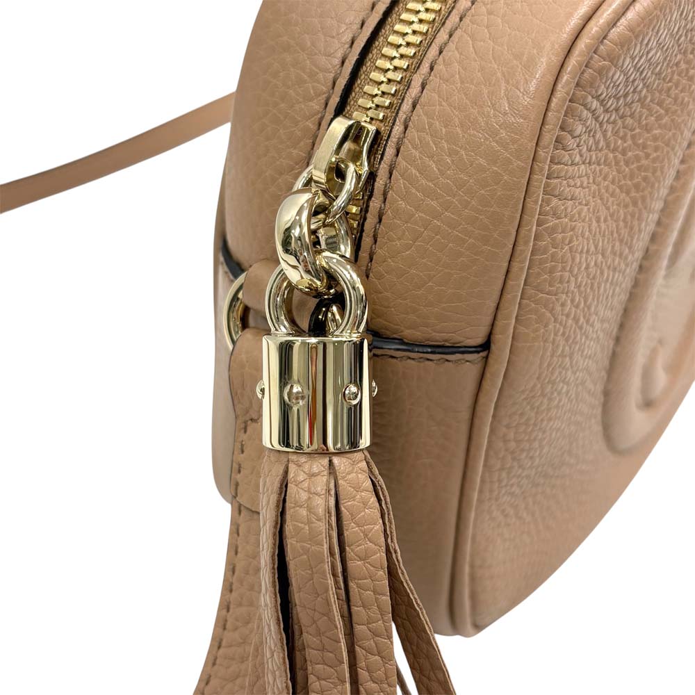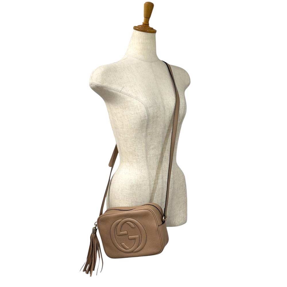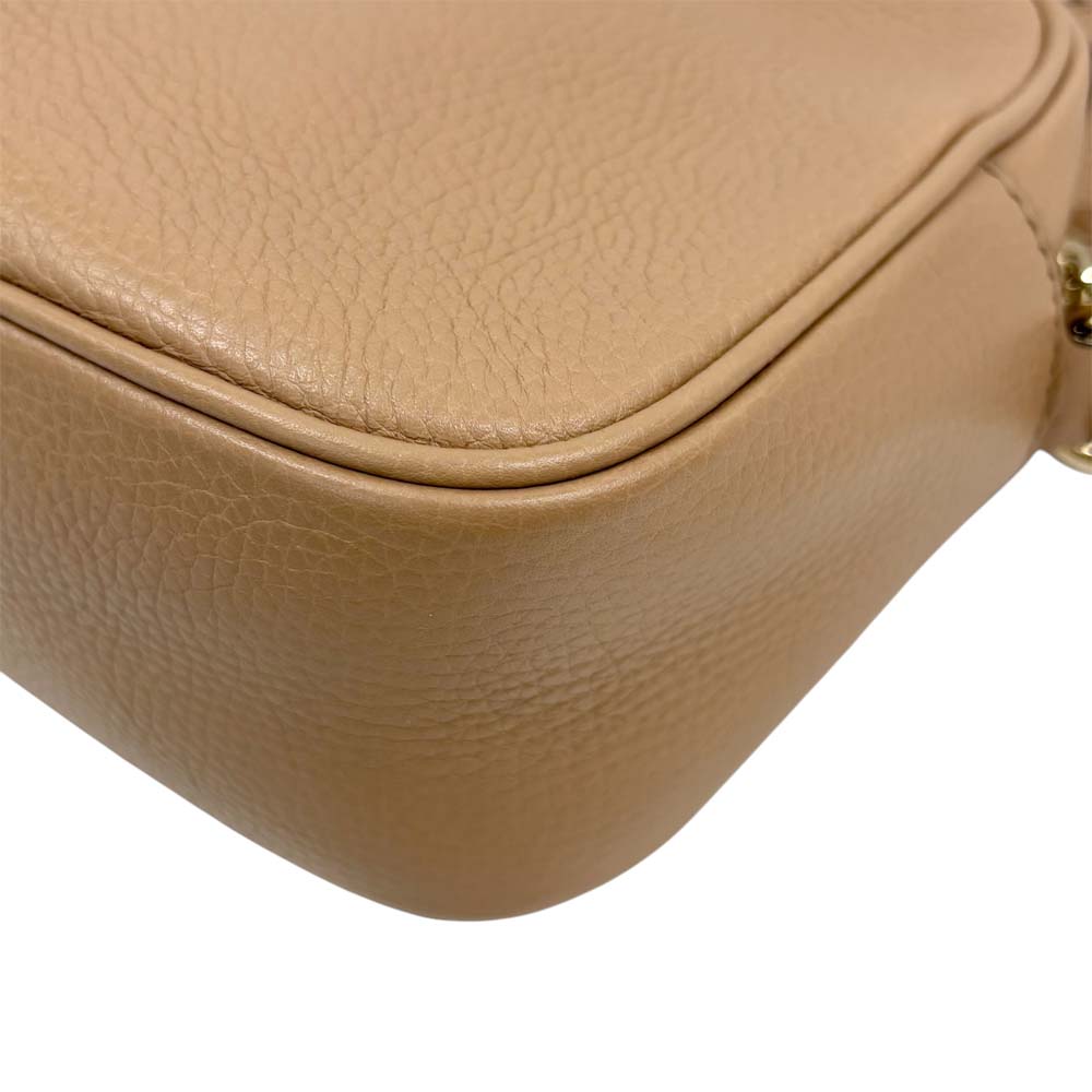 | 商品説明 | 「グッチ 308364 ソーホー」は、2012年に登場した「ソーホー」コレクションの中でも特に人気の高いスモールディスコバッグです。柔らかなグレインレザーを使用し、前面に大きくエンボス加工されたインターロッキングGロゴと、レザー製のタッセルチャームが特徴です。コンパクトながら収納力があり、調節可能なショルダーストラップで斜め掛けも可能なため、デイリーユースに最適です。 |